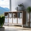 Our shelves unit is versatile for storing items such as books, documents, or home decor. it could be suitable for use in a living room, study, or office space. The design combines functionality with clean, simple lines, likely suited for contemporary or Scandinavian interior styles.