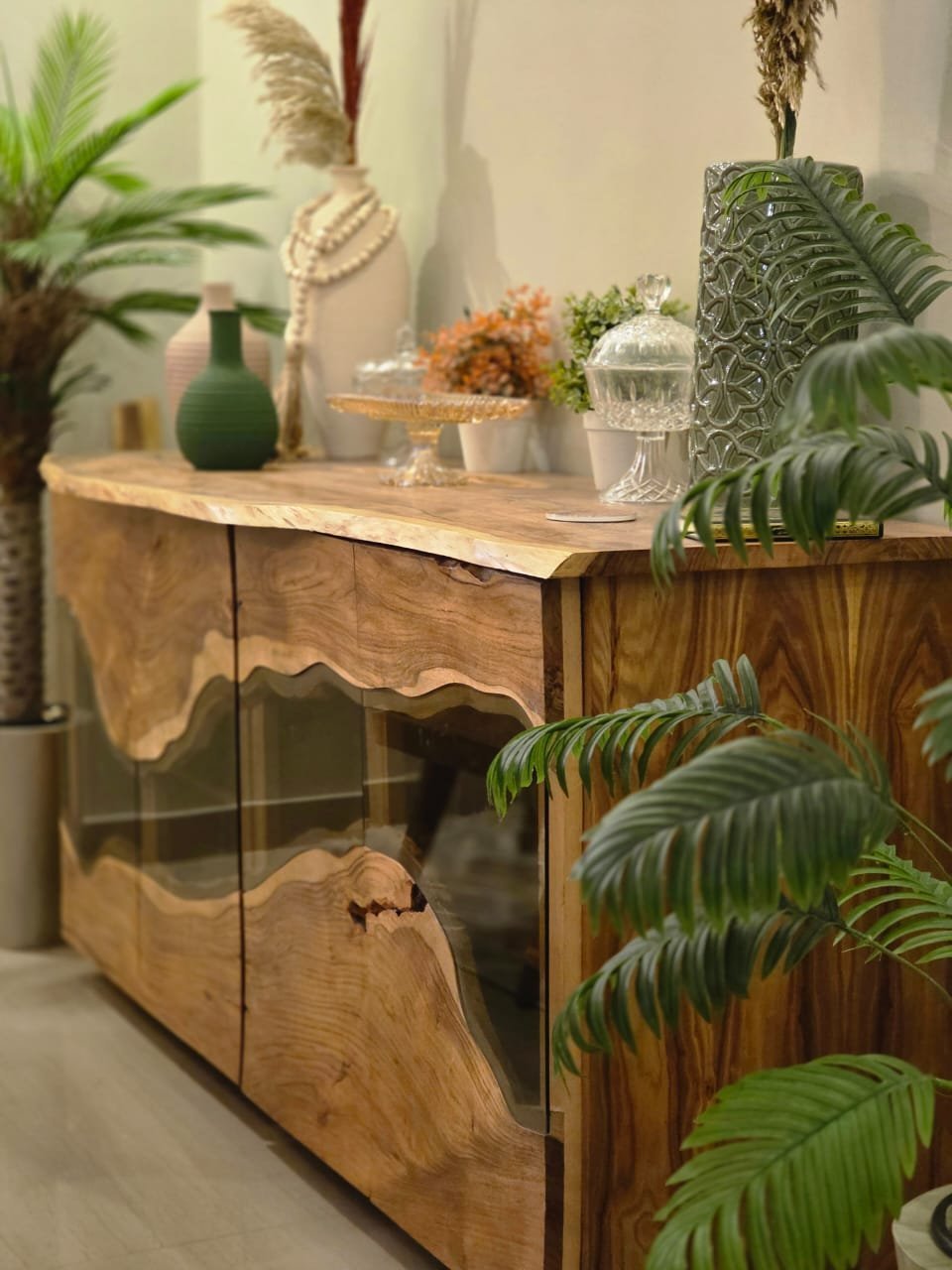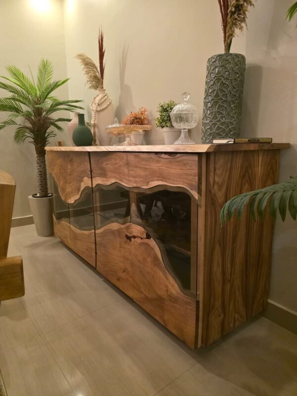 piece showcases unique wood grains and organic patterns, making every buffet truly one-of-a-kind.