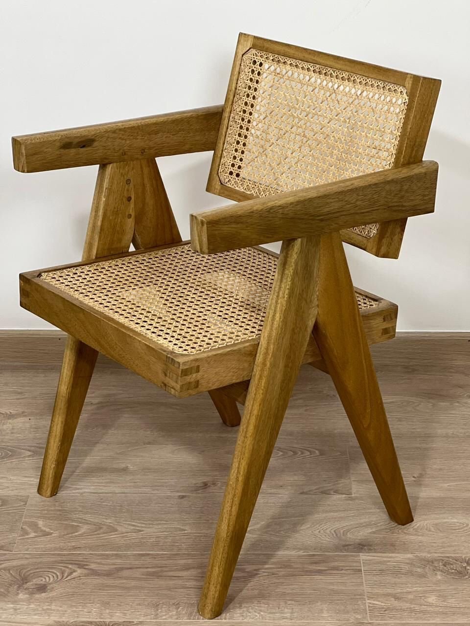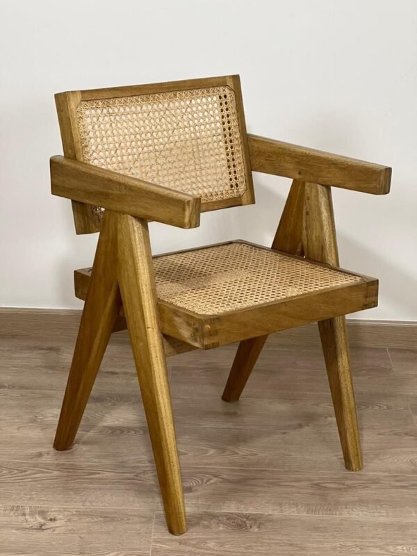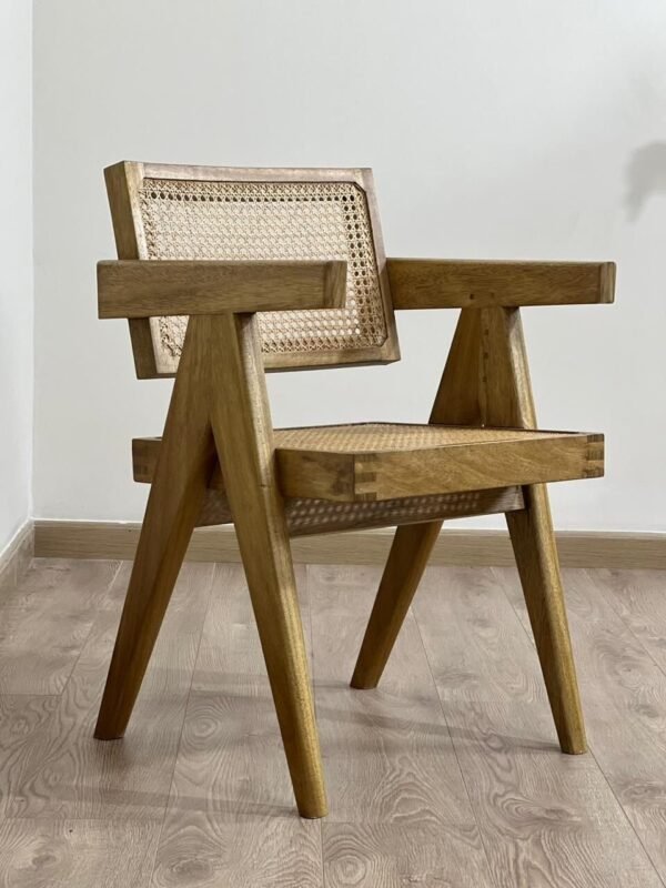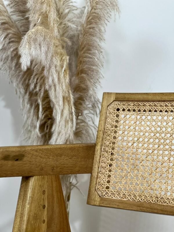Elevate your space with this stunning handmade chair, crafted from solid teak wood and finished with a natural polish that highlights its rich grain. The seat and backrest feature handwoven cane, adding breathability, comfort, and timeless charm.